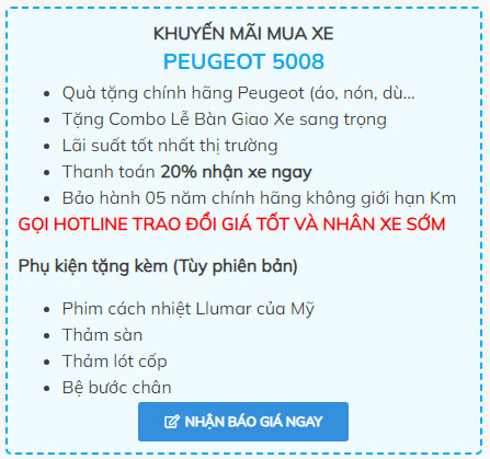 Peugeot 5008 vừa ra mắt là phiên bản facelift với một thay đổi nhẹ về thiết kế, đồng thời bổ sung trang bị để đấu Honda CR-V và Mitsubishi Outlander. Ngày 9/11, THACO chính thức giới thiệu dòng xe Peugeot 5008 tại thị trường Việt Nam với 2 phiên bản: AL (Allure) và GT (Grand Tourisme), giá bán lần lượt 1,219 tỷ đồng và 1,319 tỷ đồng.