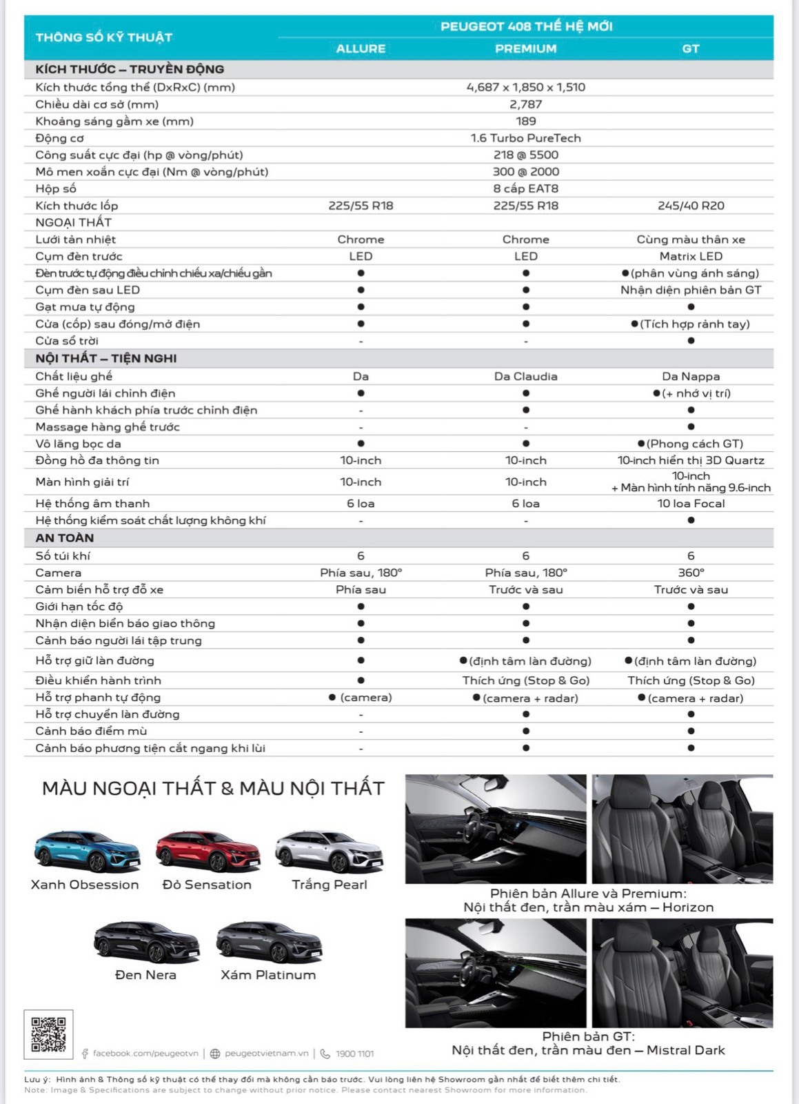 Chất liệu ghế cũng khác biệt giữa các phiên bản. Bản cao cấp nhất dùng da Nappa, bản giữa là da Claudia và bản Allure là da thường. Những trang bị khác trong xe bao gồm điều hòa hai vùng độc lập, sạc không dây, lẫy chuyển số sau vô-lăng. Bản GT có thêm đèn viền nội thất, kiểm soát chất lượng không khí, cửa sổ trời.